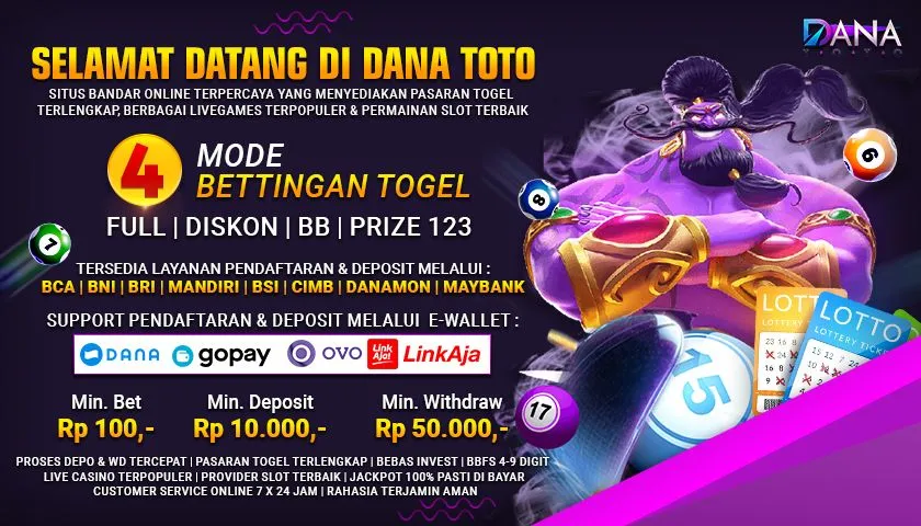 Sebagai salah satu agen livegames terpercaya dan juga terbesar, DANATOTO menyediakan banyak pilihan Bank dan E-Wallet, diantaranya adalah : BCA, BRI, BNI, MANDIRI, DANA, OVO, dan lain-lainnya. Namun proses deposit dan penarikan dana tidak dapat dilakukan setiap saat.